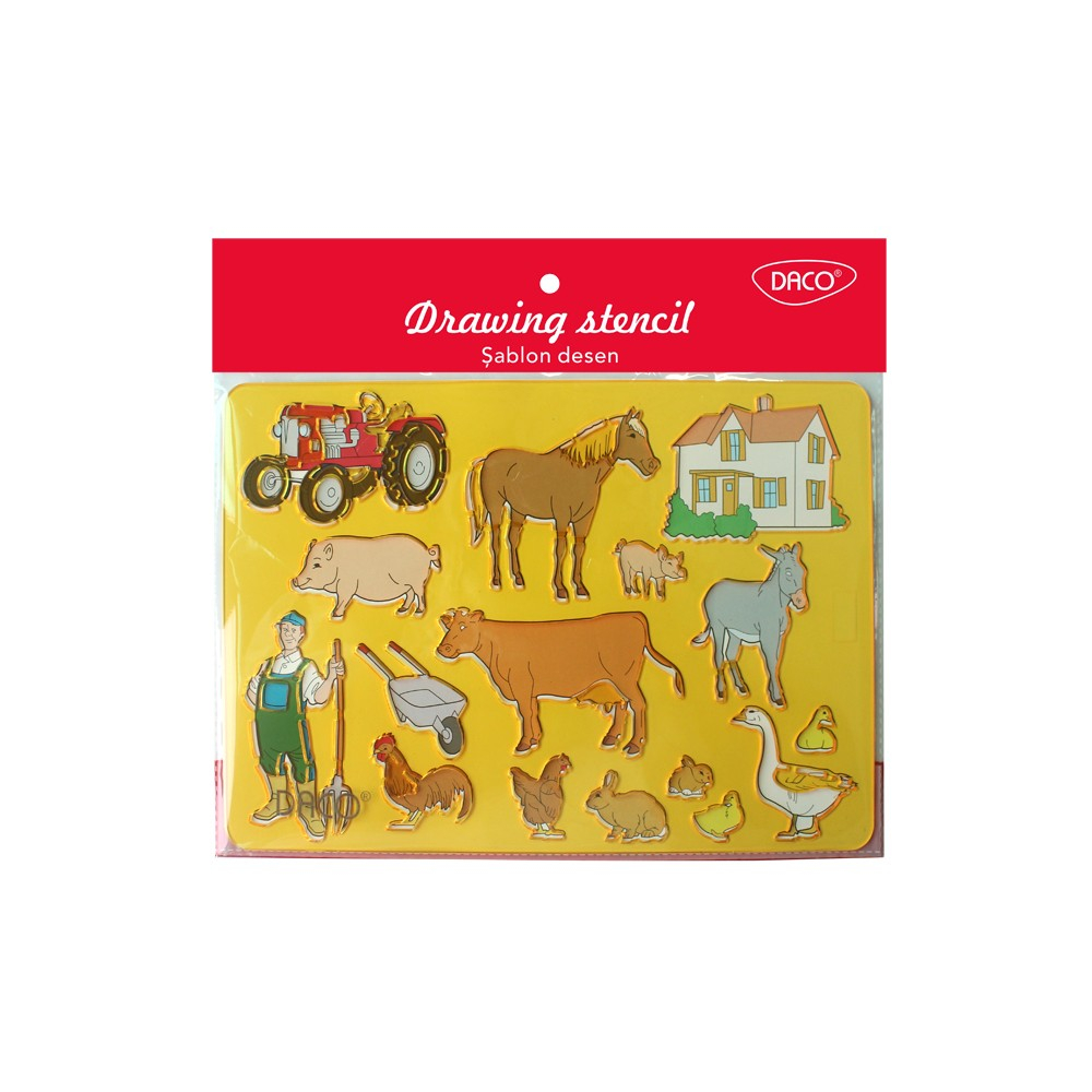 Șablonul de desen Fermă DACO este un instrument excelent pentru activități creative și educative, perfect pentru a explora lumea fermelor și a animalelor.